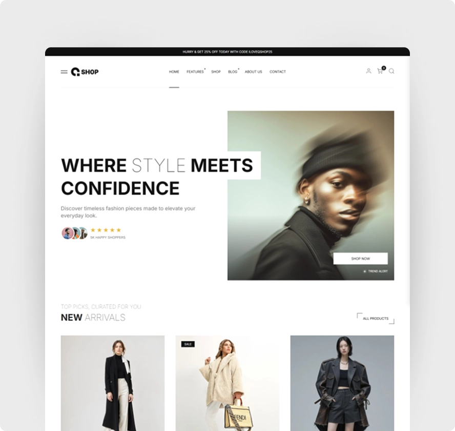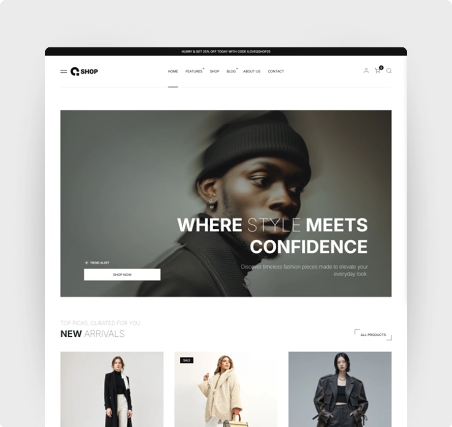 Q Shop is a modern WooCommerce theme designed for clarity and ease of use. Built to help merchants cut through the clutter and focus on what matters most, their products. Stripping away unnecessary distractions and delivering a clean, intuitive shopping experience.